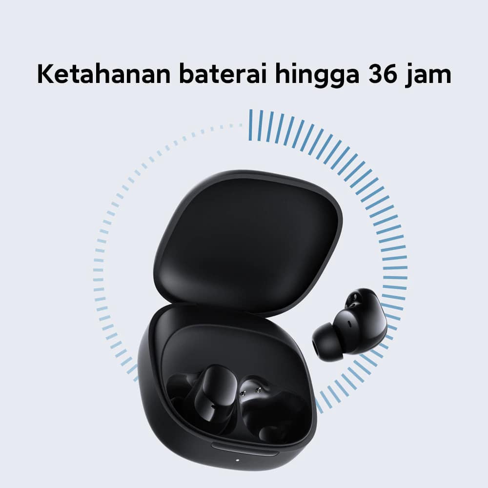 Dari sisi ketahanan daya, Xiaomi Redmi Buds 6 Play menawarkan performa yang cukup impresif. Earbud mampu bertahan hingga 7,5 jam dalam sekali pengisian daya. Sementara itu, jika dipadukan dengan casing pengisi daya, total penggunaan bisa mencapai 36 jam.